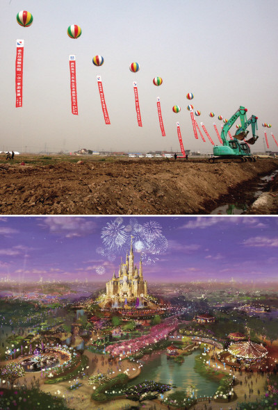 圖為4月8日,上海迪士尼樂園項(xiàng)目開工現(xiàn)場(chǎng)。
