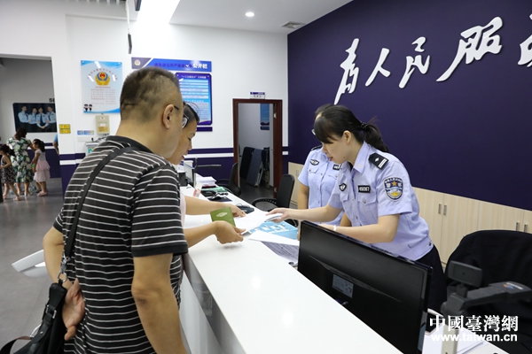 中國臺(tái)灣網(wǎng)9月3日賀州訊 9月1日上午,臺(tái)胞廖先生帶著《臺(tái)灣居民來往大陸通行證》和相關(guān)材料,來到廣西賀州市八步區(qū)建東派出所戶政大廳申領(lǐng)“臺(tái)灣居民居住證”。從材料審核、登記再到拍照,大約10分鐘,建東派出所民警就為廖先生辦完申領(lǐng)手續(xù)。在15個(gè)工作日內(nèi),他將成為賀州市首批申領(lǐng)到臺(tái)灣居民居住證的臺(tái)胞。