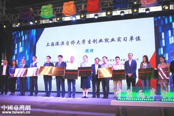 活動開幕式上,十家企業被授予“上海市港澳臺僑大學生創業就業實習單位”稱號。(圖片來源:上海市臺辦)