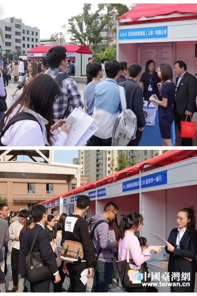 招聘會上,500余家企業在現場推出了9000余個崗位,吸引著眾多求職青年、學生關注。(圖片來源:上海市臺辦)