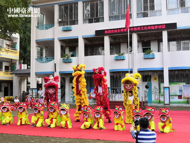 橋頭小學舞獅歡迎體驗營同學。(圖片來源:廣西省臺辦)