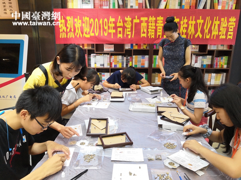 中國臺灣網7月11日訊 日前,2019年臺灣廣西籍青少年桂林文化體驗營開營,活動以“情聚家鄉追夢廣西”為主題,由桂林市臺辦主辦,臺灣華夏文創經貿協會協辦,來自臺灣的師生、家長共50人,到桂林橋頭村小學、桂林中華小學交流,考察桂林特色農業產業基地,參觀文化名街東西巷、明代靖江王府、花橋美術館、“漓江畫派”創始人陽太陽故居,與桂林學子互動交流,制作傳統工藝作品,體驗桂林傳統文化。