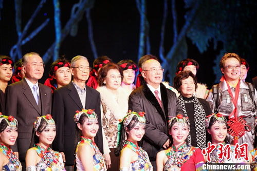 1月8日晚,中國國民黨榮譽(yù)主席吳伯雄、臺灣文化總會副會長林澄枝等在臺北觀看了大陸最頂尖的中國東方歌舞團(tuán)演出《秘境之旅》后,與演員合影。吳伯雄并稱贊演出“賞心悅目”。由大陸著名編導(dǎo)陳維亞率領(lǐng)的中國東方歌舞團(tuán)百人陣容,于1月8日至9日在臺北臺大綜合體育館演出2場大型音樂舞蹈晚會《秘境之旅》,展現(xiàn)博大精深的西部歌舞文化。首場演出以融合現(xiàn)代舞的大膽創(chuàng)新、富節(jié)奏的音樂,以及諸多高科技手段,博得觀眾熱烈反響。