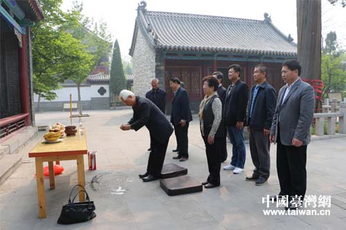 中國臺灣網5月5日梅州消息 日前,祖籍山東桓臺縣新城鎮的臺胞王錫承老先生偕家人回鄉尋根祭祖。日前,王錫承老先生家人在王氏宗親的陪同下來到祖堂,一起祭拜祖先。