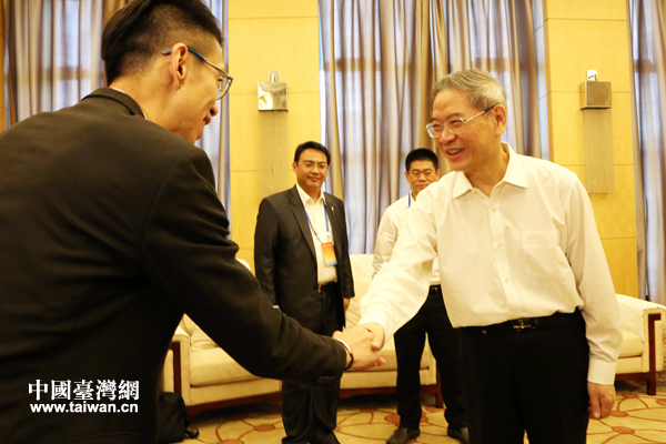 7月18日上午,全國人大常委會委員、海協會會長張志軍會見參加第三屆海峽兩岸青年東湖論壇的臺灣青年代表。(中國臺灣網 趙苗青 攝)