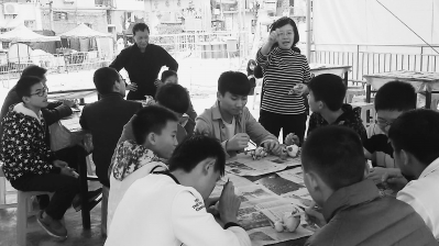 周芷如在進行水仙花雕藝教學(xué)。(資料圖片)
