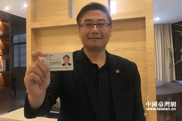 尤浩宇向記者展示了他的居住證。(中國臺灣網 趙苗青 攝)