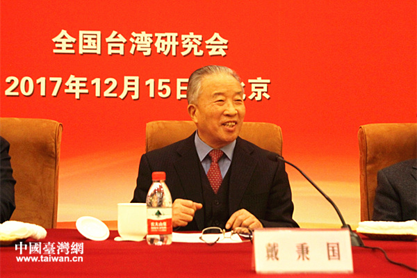 12月15日,由全國臺研會主辦的“2017年臺灣政局暨兩岸關(guān)系回顧與展望研討會”在北京召開,全國臺研會會長戴秉國致辭。(中國臺灣網(wǎng) 王鑫 攝)
