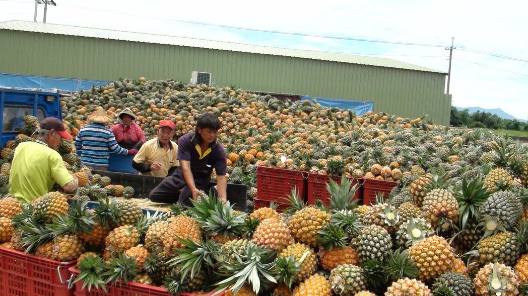 島內合作社內堆積了上百噸鳳梨無處可送。(圖片來源:臺灣《聯合報》)