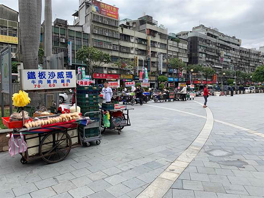 民進黨余天市前街會場,攤販與人潮零星稀疏,場面相對冷清。(圖片來源:臺灣“中時電子報”)