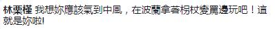 網友們紛紛留言“她現(xiàn)在豈不瘋掉了,淹大水耶!是全部南臺灣呢!”“邱大‘委員’這次怎么沒有講快要中風,你是以黨論黨嗎?”“氣到趕快去波蘭狂歡來壓壓驚咩”“你怎么不罵了?難不成你中風了?丟臉啊!薄艾F(xiàn)世報來的真快啊”“一個旗山人跑去金門玩,一個旗山‘立委’跑去波蘭玩,不知道這次屏東女兒要砸?guī)着_電視呢?”