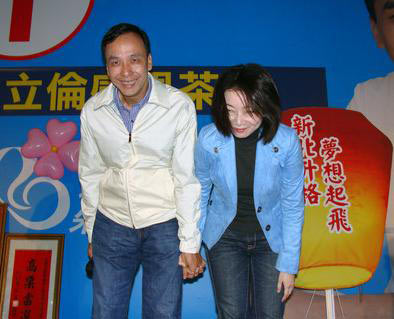 朱立倫與妻子高婉倩一上臺就向臺下所有人鞠躬表示感謝。圖片來源:臺灣“中央社”