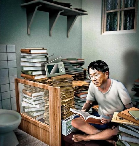 據(jù)臺灣《蘋果日報》報道,陳水扁已被收押在臺北看守所563天,因未被禁止接見及通信,陳水扁在獄中訂閱報紙、購買收音機與掌上型電視掌握時事,加上會客親友寄送書報雜志,不到兩坪的牢房已堆得像倉庫。