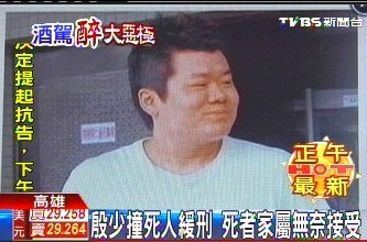 中國臺灣網(wǎng)10月26日消息 據(jù)臺灣TVBS電視臺報道,去年中秋節(jié),開法拉利撞死人的殷少爺殷浩中,經(jīng)過1年多審理,法官對他判處1年徒刑緩刑3年,雙方在9月份以500萬元(新臺幣,下同)和解。