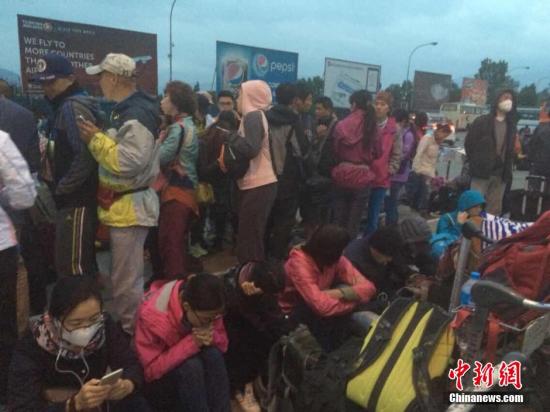 4月25日14時11分在尼泊爾(北緯28.2度,東經84.7度)發生8.1級地震,首都加德滿都機場因地震占時關閉,部分中國游客在機場等待回國。中國駐尼泊爾大使館人員在現場安撫。中新社發 李滟竹 攝