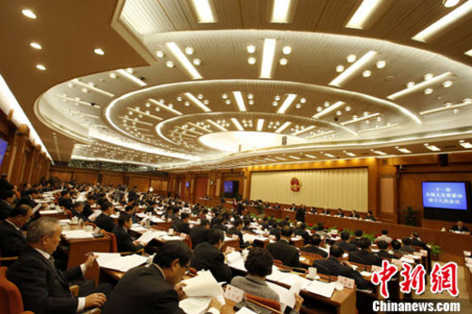 12月20日下午,十一屆全國人大常委會第十八次會議在北京人民大會堂舉行第一次全體會議。中新社記者 任晨鳴 攝