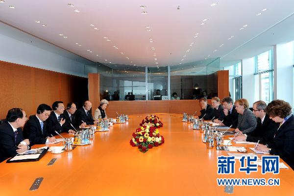 默克爾通報了德國和歐盟經濟形勢,對中國支持西班牙等歐盟國家應對主權債務危機表示歡迎。她表示,實現歐洲一體化是歐洲人的愿望,歐盟國家要捍衛歐元,絕不能從一體化進程中倒退,歐盟國家應下決心進行改革和調整,提升經濟競爭力。