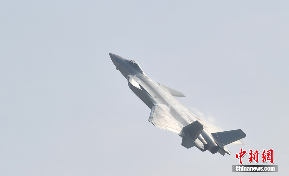 11月1日,第十一屆中國(guó)航展將在廣東珠海國(guó)際航展中心開(kāi)幕。中國(guó)空軍八一飛行表演隊(duì)上演“空中芭蕾”。殲—20首次亮相表演。 (中新網(wǎng)記者 金碩 攝)