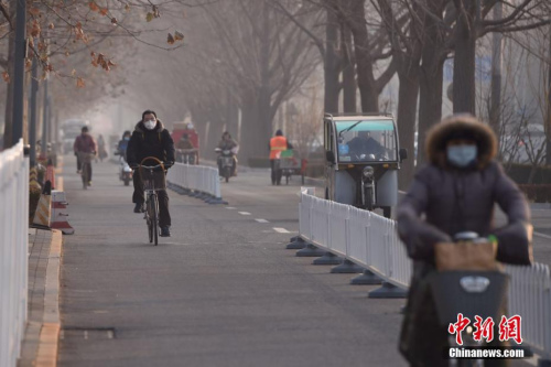 資料圖:霧霾天氣中,民眾戴著口罩出行。中新社記者 翟羽佳 攝