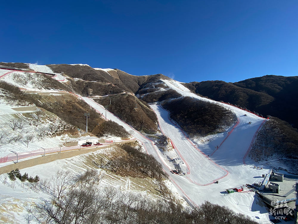 △國家高山滑雪中心的雪道系統共設7條雪道,3條用于競賽,4條作為訓練,總長9.2公里,其中滑降賽道落差近900米。(總臺央視記者楊立峰拍攝)