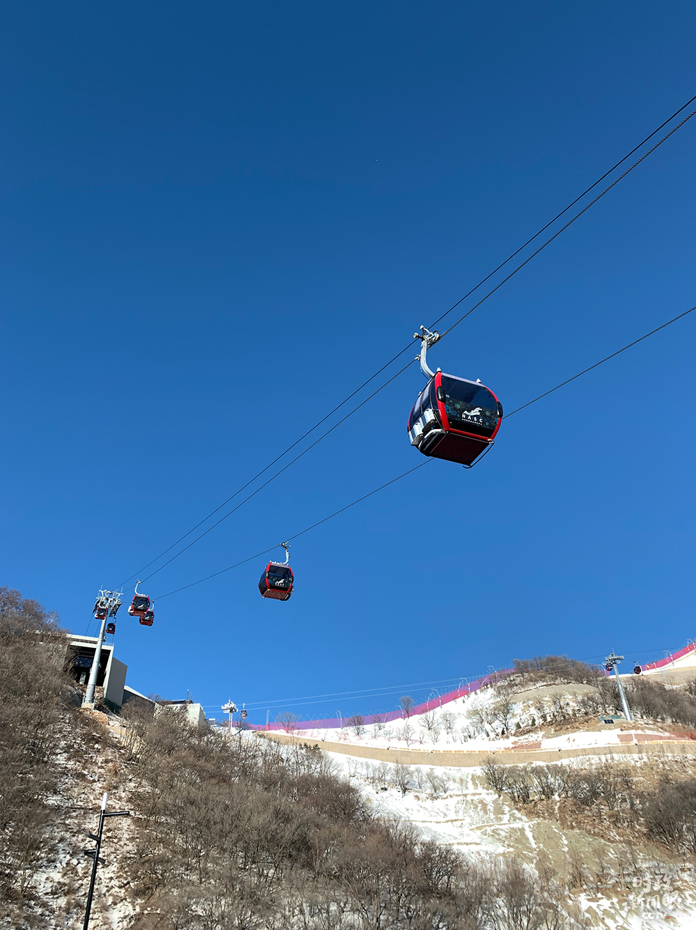 △索道系統由9條索道及2條牽引組成,全長10.3公里,賽時可確保運動員30分鐘內從冬奧村抵達各項目出發點。(總臺國廣記者李晉、央視記者石丞拍攝)