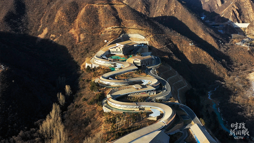 △國家雪車雪橇中心結合自然地形和遮陽設計,研發出一套獨特的“地形氣候保護系統”,能夠有效保護賽道不受陽光、風雪影響。整條賽道宛如一條游龍,飛騰于山脊之上。(總臺央視記者程鋮拍攝)