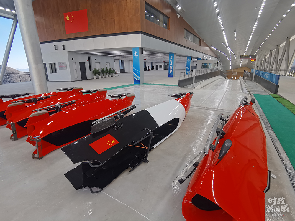 △陳列在國家雪車雪橇中心的雪橇(總臺央視記者楊波拍攝)
