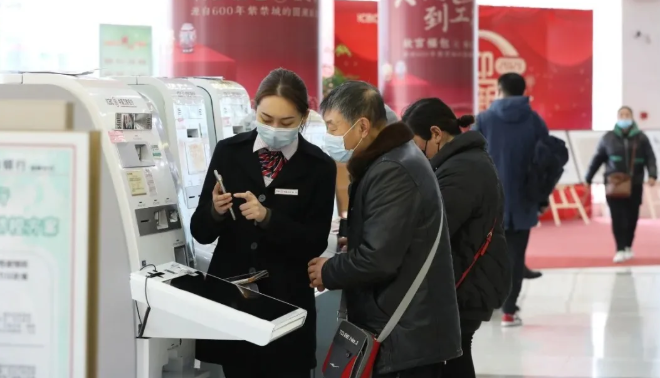△今年1月,江蘇揚州,銀行工作人員協助群眾領取養老金