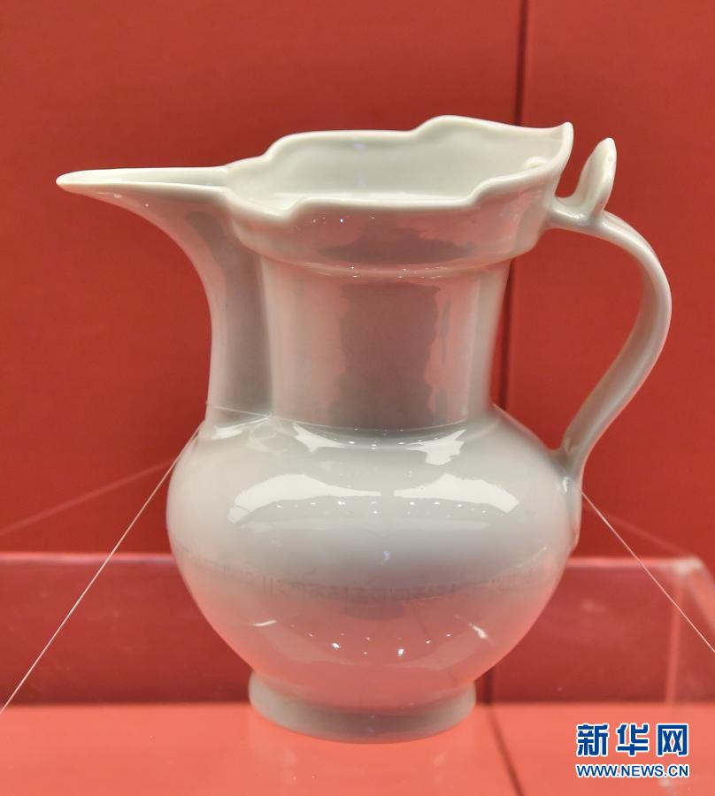 白釉暗花藏文紋僧帽壺(1月26日攝)。新華社記者 晉美多吉 攝