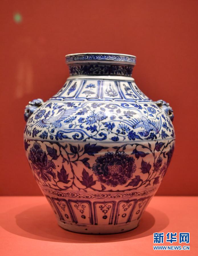 布達拉宮宮藏元代青花鳳穿牡丹紋罐(1月26日攝)。新華社記者 晉美多吉 攝
