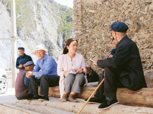 △2018年4月,甘肅省舟曲縣扶貧辦副主任張小娟(右二)在下鄉(xiāng)時(shí)向群眾了解情況。2019年10月7日,在扶貧下鄉(xiāng)返程途中,張小娟因乘坐的車(chē)輛墜河不幸殉職。