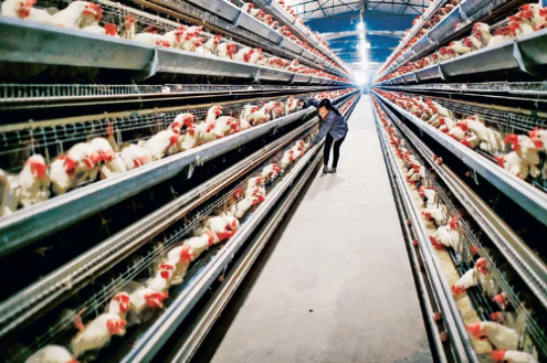 △通過(guò)因地制宜發(fā)展特色產(chǎn)業(yè),貴州畢節(jié)市七星關(guān)區(qū)五里坪村農(nóng)民逐漸脫貧走上了小康路。圖為當(dāng)?shù)剞r(nóng)戶(hù)在一個(gè)屬于精準(zhǔn)扶貧項(xiàng)目的養(yǎng)雞場(chǎng)內(nèi)工作。
