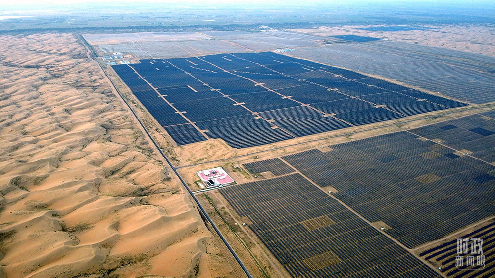 △內蒙古鄂爾多斯,達拉特旗光伏發電領跑獎勵基地,是全球最大的沙漠集中式光伏電站。(圖/視覺中國)