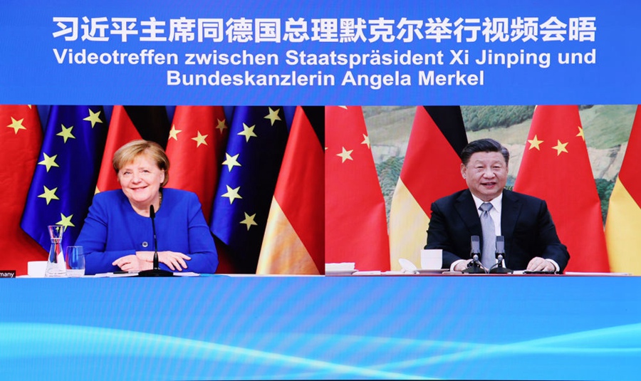 這是一次特殊的會晤。已擔(dān)任德國總理16年的默克爾,不久后將卸任。她原計劃再度訪華。由于疫情,兩位領(lǐng)導(dǎo)人商定,以視頻會晤的方式再度會面。