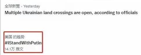 支持俄羅斯、支持普京的詞條甚至登上過推特熱搜榜的前列。