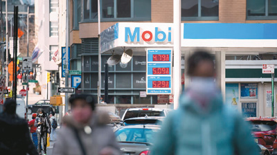 美國(guó)勞工部公布的數(shù)據(jù)顯示,今年1月美國(guó)消費(fèi)者價(jià)格指數(shù)環(huán)比上漲0.6%,同比上漲7.5%,創(chuàng)1982年2月以來(lái)最大同比漲幅,凸顯美國(guó)通貨膨脹壓力繼續(xù)攀升。圖為近日,美國(guó)紐約一家加油站的電子屏顯示油品價(jià)格。
