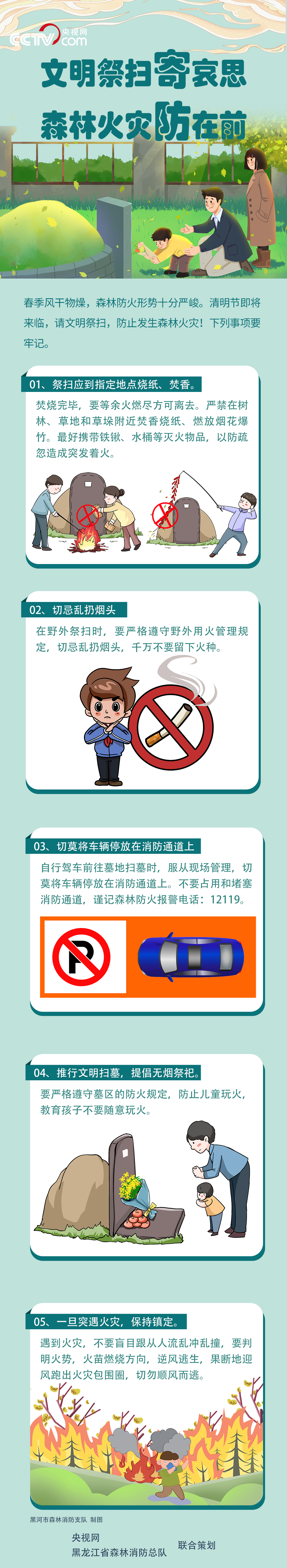央視網消息(記者 田宏 報道員 蘇新兵):清明將至,本周末將迎來第一波祭掃小高峰。而春季風干物燥,是森林火災的多發期,森林防火形勢十分嚴峻。為確保清明期間祭祀活動的安全,這份森林防火小常識清單請收好。