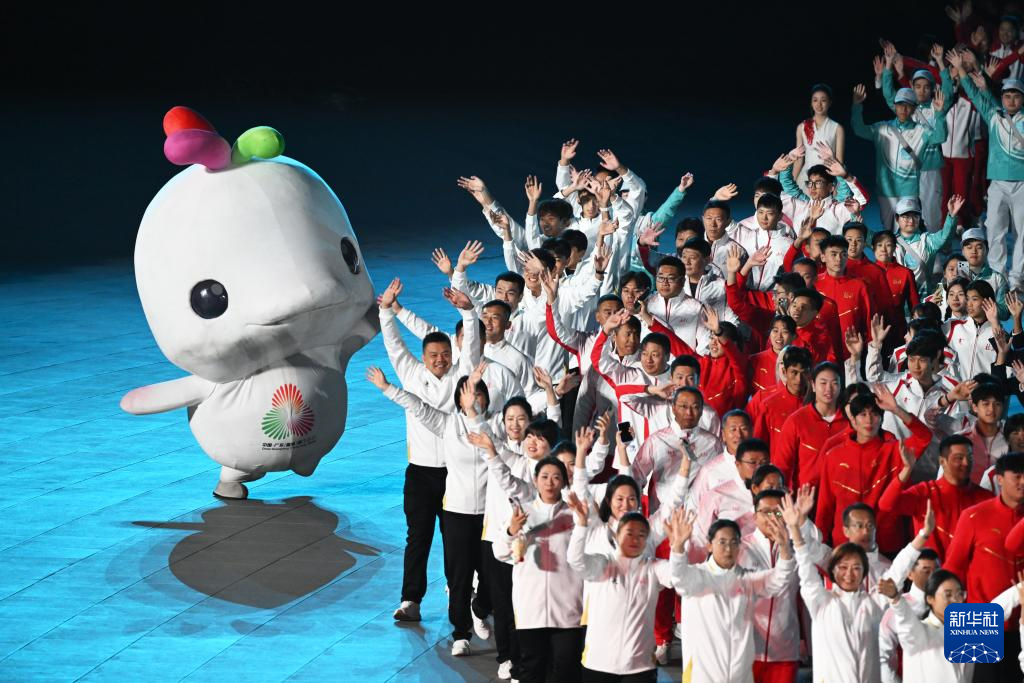 11月21日,廣東省體育代表團(tuán)、香港特別行政區(qū)體育代表團(tuán)和澳門特別行政區(qū)體育代表團(tuán)代表在閉幕式入場(chǎng)儀式上共同入場(chǎng)。
