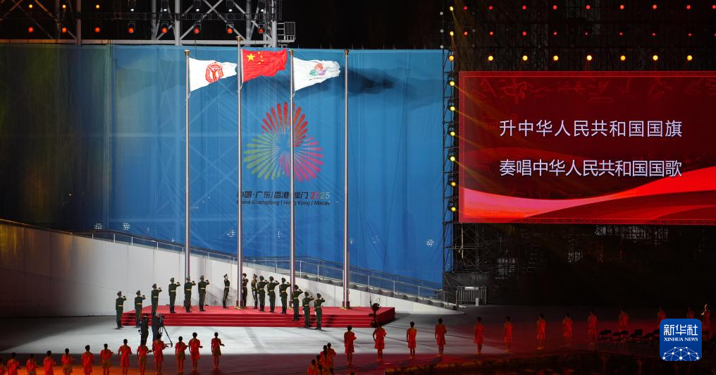 11月21日,廣東、香港和澳門代表團(tuán)代表在閉幕式上一同入場(chǎng)。