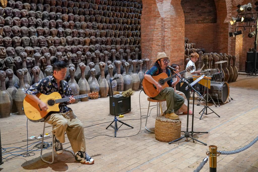 9月8日,歌手在東風韻小鎮為游客表演。新華社記者 彭奕凱 攝