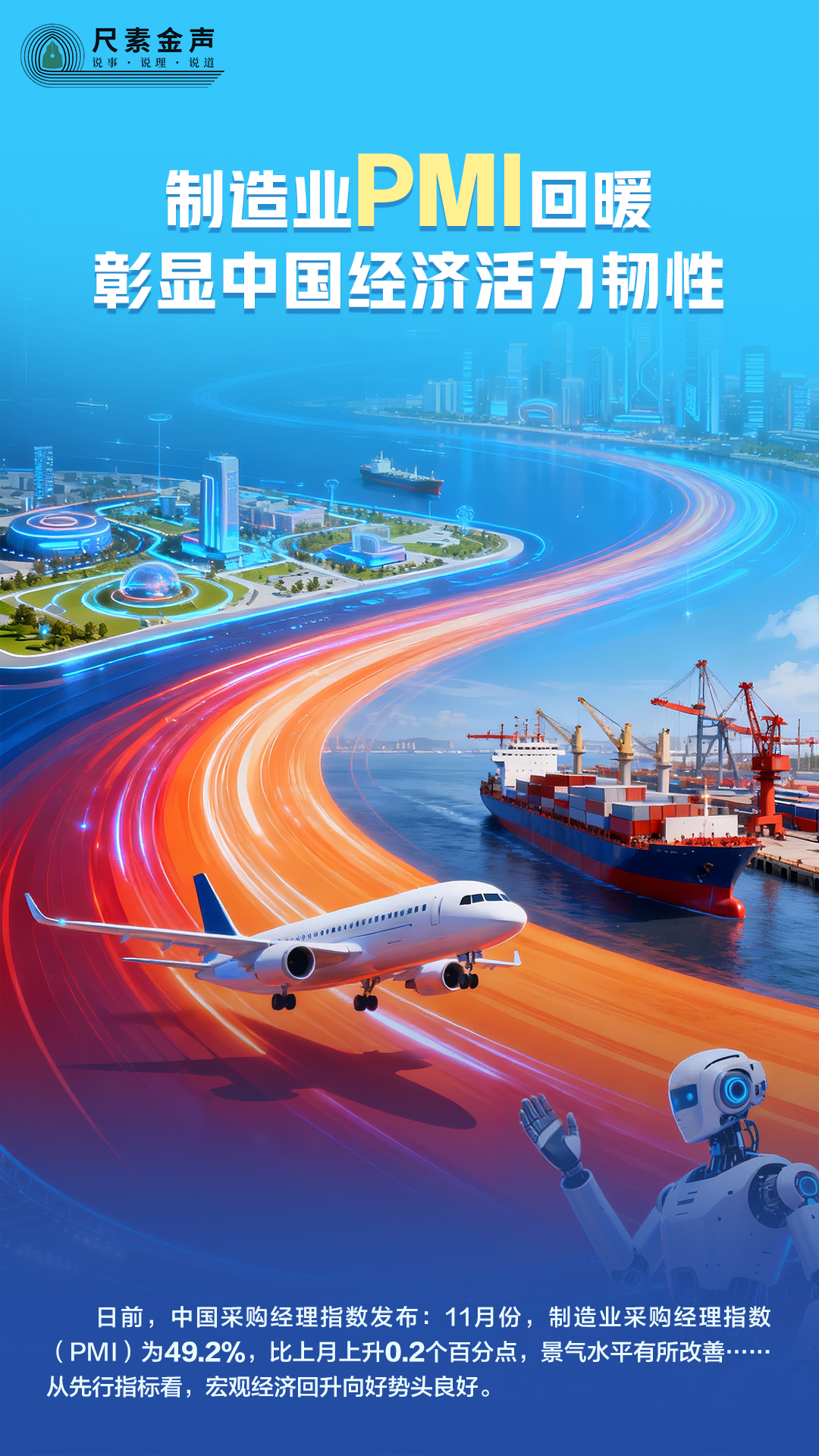 日前,中國采購經理指數發布:11月份,制造業采購經理指數(PMI)為49.2%,比上月上升0.2個百分點,景氣水平有所改善……從先行指標看,宏觀經濟回升向好勢頭良好。
