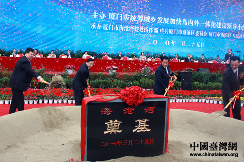 領導進行海滄灣奠基培土。(中國臺灣網 董潔 攝)