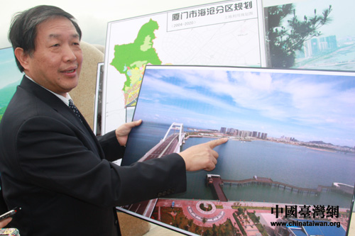 廈門市副市長潘世建向記者描繪新區愿景。(中國臺灣網 董潔 攝)
