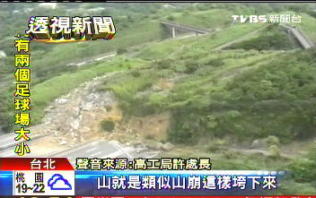 曾大仁向朱立倫簡報指出,現(xiàn)場發(fā)生邊坡滑動,造成約10萬立方的土石崩落及道路上方的橋梁斷裂,目前巳出動30部挖土機等機具開挖,初步了解,北上車道應無人車受困,但南下車道則可能有人車受困,正調閱監(jiān)視錄像帶進行比對,以厘清是否有車遭掩埋。
