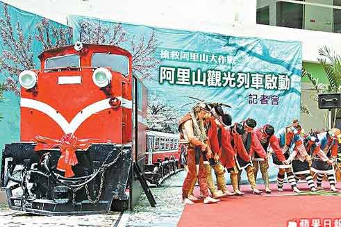 嘉義縣政府昨記者會推阿里山觀光,邀鄒族等少數民族表演舞蹈。圖片來源:臺灣《蘋果日報》
