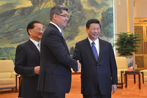 2013年2月,中共中央總書記習近平在京會見連戰,連勝文隨父同行。會見中有一個有趣的過程,連戰把他的兒子介紹給習近平,然后特別強調說“我兒子個子很高”。多高呢?1米95。習近平開心地大笑,笑得非常輕松,就像一家人。(圖片取自網絡)