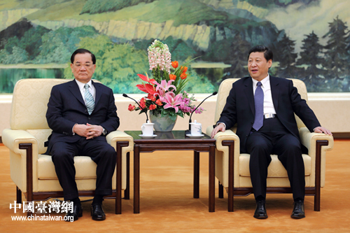 2013年2月25日上午,中共中央總書記習(xí)近平在人民大會堂會見了中國國民黨榮譽(yù)主席連戰(zhàn)一行。(中國臺灣網(wǎng)圖)