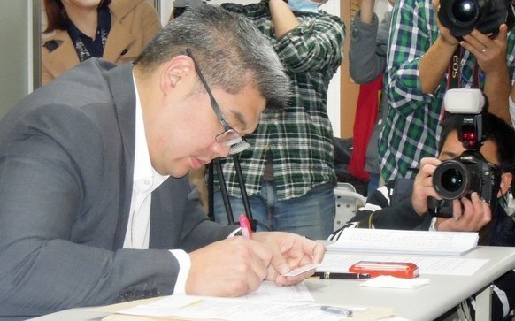 國民黨中央委員連勝文上午到市黨部領表。(臺媒圖)