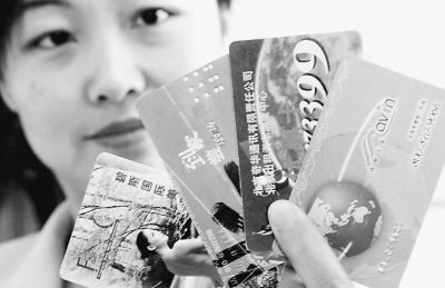 北京一消費者正在展示自己的部分會員卡。陳曉根攝
