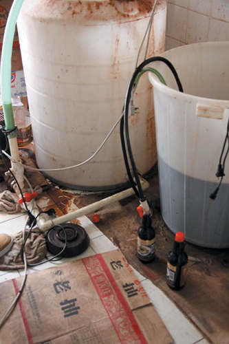 作坊非法加工調料 自來水加焦糖色勾兌醬油(圖)